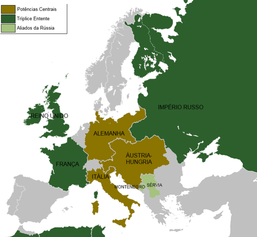 A França e a Rússia estavam ligadas por uma aliança militar, desde 1892. Mais tarde, em 1904, a França e o Reino Unido estabeleceram um acordo que ficou conhecido como Entante Cordiale, acordo que abriu caminho para relações mais estreitas entre a França e o Reino Unido, nomeadamente nos assuntos militares. O mesmo tipo de acordo foi estabelecido em 1907 entre o Reino Unido e a Rússia. Estes acordos, com a aliança franco-russa, ficaram conhecidos por Tríplice Entente e o conjunto das Potências que a constituíam ficou conhecido como "Aliados", expressão que abarcou também os outros países que se lhes juntaram na luta contra as Potências Centrais.